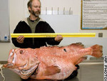 アラスカ州アンカレジ――シアトルのアラスカ州漁業科学センターなどによると、同州沖合のベーリング海上にあるプリビロフ諸島南部で先月、操業中のトロール漁船が体長約1メートル12センチ、重さ約27.2キロと超大型の、メバルの仲間ヒレグロメヌケを捕獲した。